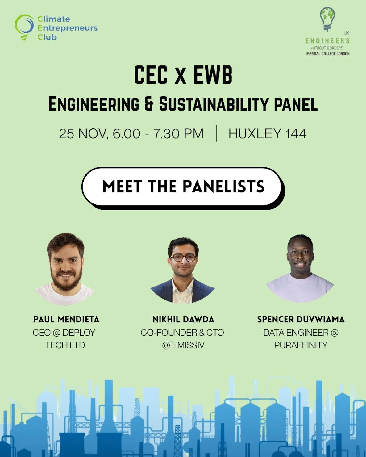 ““As a business student, CEC provides the perfect opportunity for me to come in contact with non-business members of Imperial College and create diverse teams to tackle today’s most urgent climate challenges.””